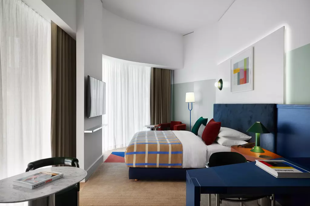 Enjoy a curated selection of thoughtful amenities, from a state-of-the-art fitness centre to impeccable room service and complimentary Wi-Fi. Savour authentic cuisine and expertly crafted cocktails, all while enjoying stunning skyline views at our stylish dining venues. After a day of discovery, retreat to our design-led guest rooms, where premium bedding and Bauhaus-inspired décor create a tranquil retreat.