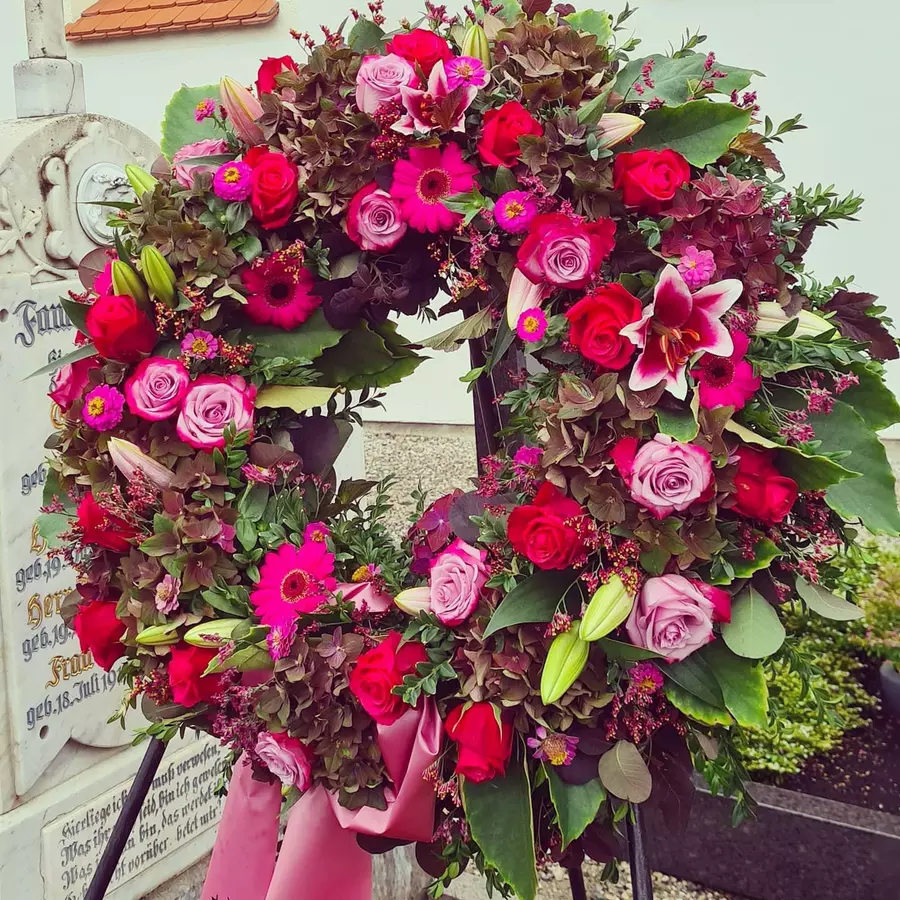 Zu unseren Dienstleistungen zählen Hochzeits- und Trauerfloristik, Grabbepflanzung und Kübelpflanzen Überwinterung.