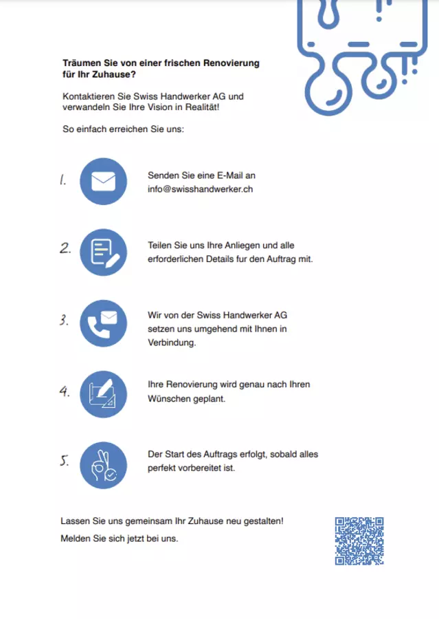 Bei der Swiss Handwerker AG wissen wir, dass Ihr Zuhause mehr als nur ein Gebäude ist – es ist ein Ort voller Erinnerungen, Komfort und Ausdruck Ihrer Persönlichkeit. Daher betrachten wir jede private Immobilie als eine Partnerschaft, die auf gegenseitigem Vertrauen basiert.