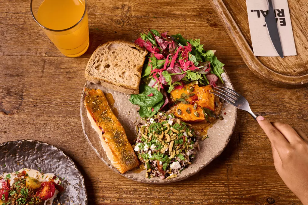 Nuestra comida es de verdad: está hecha en casa todos los días con productos genuinos y sin procesar. Sin conservantes artificiales, ni azúcares refinados, y orgánicos siempre que podemos. Nos gusta comer comida de origen local y responsable, apoyando a los agricultores, proveedores y artesanos cercanos que utilizan métodos sostenibles. Respetamos todas las dietas y ofrecemos varios platos sin gluten, vegetarianos, plant-based y keto.