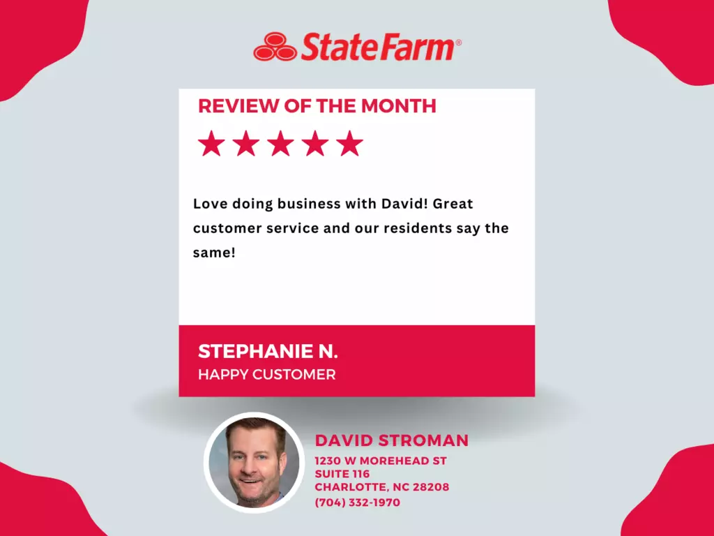 NC-3199902 The David Stroman State Farm office has been assisting State Farm Charlotte, NC customers since 2001. We can also assist our SC neighbors! Our office can help with auto insurance, home insurance, renters insurance, life insurance, business insurance, and much more. When the unfortunate incidents occur, we pledge to be there to assist you through the good & the bad.