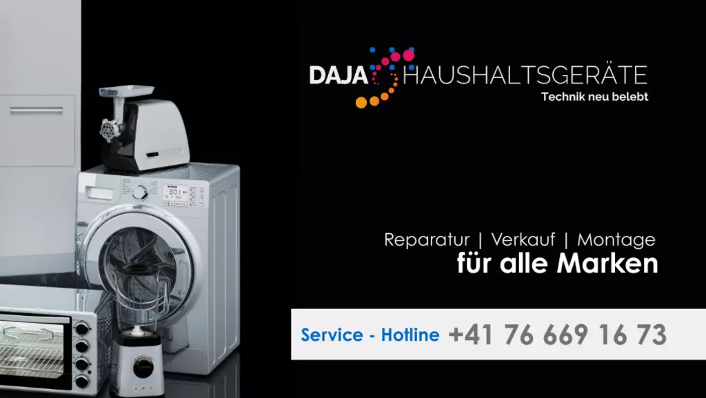 DAJA | Haushaltsgeräte bietet markenunabhängige Reparaturen von Waschmaschinen, Geschirrspülern, Tumblern, Backöfen & mehr schnell, zuverlässig und direkt bei Ihnen vor Ort. Wir bedienen Privat- & Geschäftskunden in Graubünden, Zürich, St. Gallen, Schwyz, Glarus, Thurgau, Zug, Luzern, Appenzell sowie im Fürstentum Liechtenstein. Faire Preise, flexible Termine (auch abends/Samstag) und persönliche Beratung inklusive. Reparieren statt ersetzen nachhaltig & effizient. Jetzt Kontakt aufnehmen!