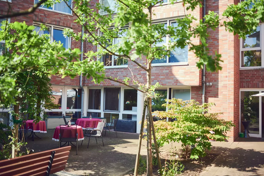 Bei schönem Wetter lädt Sie unsere geschützte Gartenanlage mit einer großen Terrasse und zahlreichen Sitzgelegenheiten zum Verweilen ein.