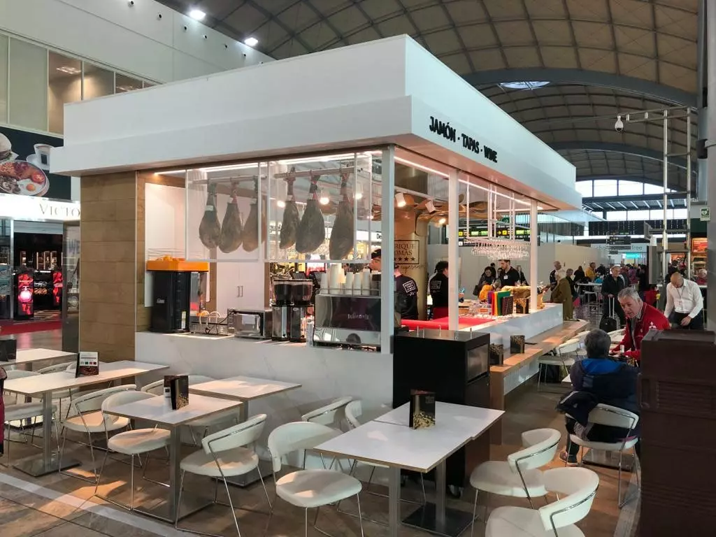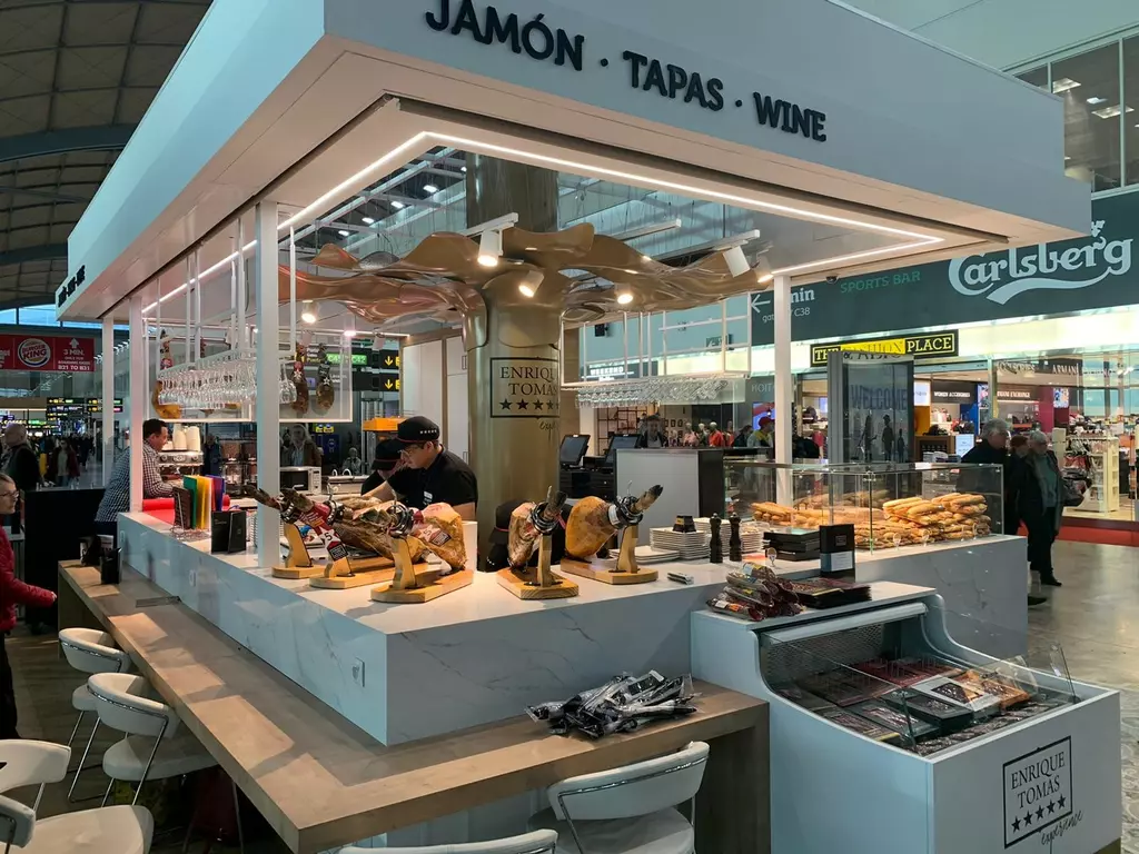 ESP:Jamonería diseñada para permitir a los visitantes descubrir el mundo del jamón en todos sus sabores y formatos, garantizando productos de calidad y una atención cálida y cercana. Puede encontrar una zona de tiendas con una amplia selección de jamones de diferentes procedencias, embutidos, quesos, vinos y otras especialidades y degustación de la zona de la barra.