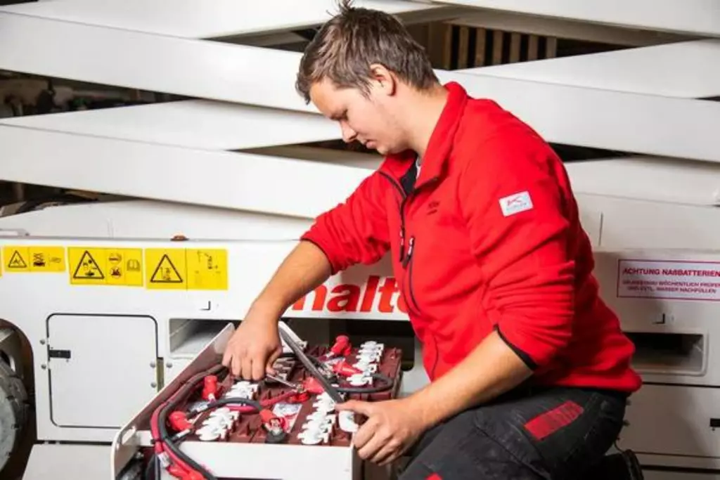 Durch die systematischen Wartungsabläufe gewährleisten wir einen möglichst störungsfreien Einsatz der Arbeitsbühnen.