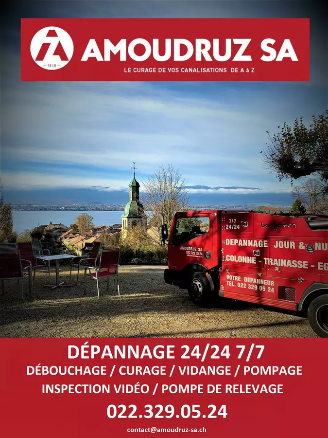 Créé en 1848 à Genève, Amoudruz SA est spécialisée dans la vidange et le curage de canalisations. L’entreprise s’est développée en totale corrélation avec les avancées technologiques et démographiques. Toujours familiale et à l’échelle humaine, Amoudruz SA est actif dans tout le canton de Genève et la Côte. Chaque jour, nos équipes d’entretien couvre l’ensemble de la région afin de prévenir ou de garantir le confort des privés comme des institutions et des industriels. De part son activité principale et historique, Amoudruz est totalement orienté développement durable. L’écologie fait partie intégrante du quotidien de l’entreprise. Chaque geste ou action est analysée en vue de recyclage optimal. Amoudruz intervient aussi dans des processus de réflexions et d’analyses en matière de création ou d’optimisation de canalisations.VIDANGE ET CURAGE