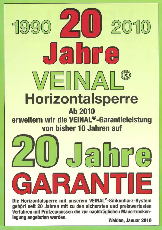 Ihr VEINAL® - Fachbetrieb mit Lösungen für alle Schimmel- und Bauabdichtungen von Horizontal- über Vertikalsperre bis Klimaplatten sowie der Wasserschadenbeseitigung und Bauaustrocknung.