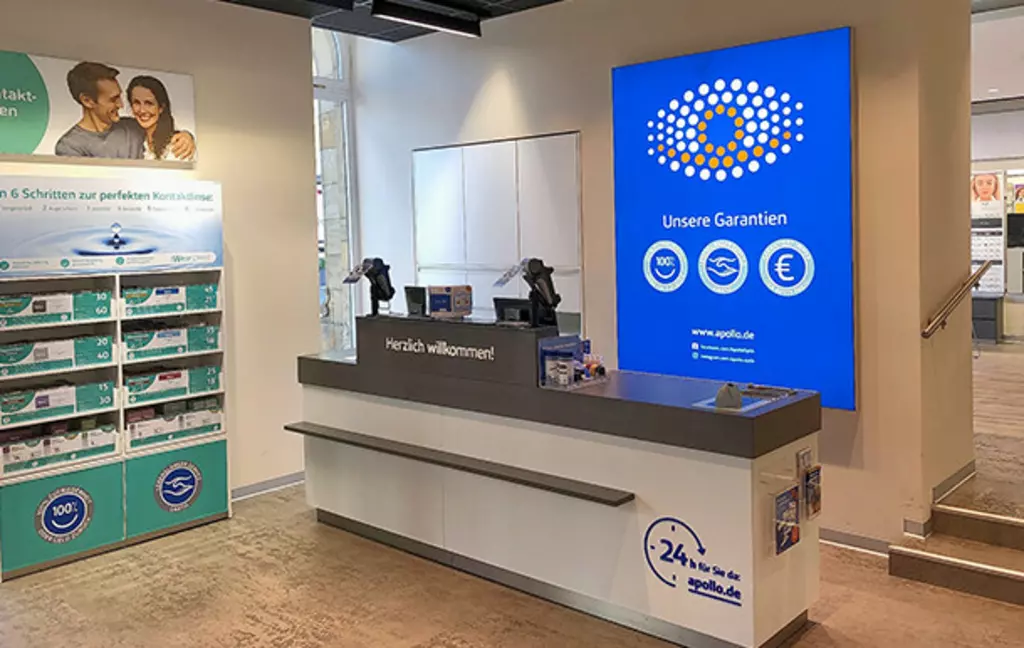 Besuchen Sie den Apollo Optiker in Halle (Saale) (06108) für individuelle Beratung und eine umfangreiche Auswahl an Produkten. Mit hochmodernen Messverfahren und Geräten sorgen wir für eine präzise Bestimmung Ihres Sehvermögens. Dank unserer bequemen Online-Terminbuchung profitieren Sie zudem von kurzen Wartezeiten beim Optiker in Halle (Saale). Neben unseren Apollo Service-Garantien, die unter anderem kleinere Brillenreparaturen einschließen, bieten wir Ihnen auch eine breite Auswahl an Brillen, Sonnenbrillen und Kontaktlinsen. Bei Apollo in Halle (Saale) finden Sie alles von trendigen Kinderbrillen über Gleitsichtbrillen bis hin zu Ray-Ban Sonnenbrillen. Vervollständigen Sie Ihren Stil mit dem passenden Zubehör, darunter Etuis und Brillenbänder. Apollo-Optik - Halle (Saale) - Marktplatz hält zudem eine große Auswahl an Kontaktlinsen und Kontaktlinsenflüssigkeiten bereit, ergänzt durch fachkundige Beratung direkt vor Ort.
