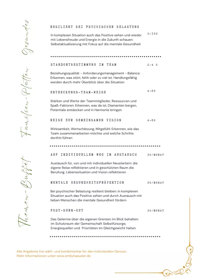 Die Seite "Emily Haeusler Coaching" est géré par une agence.Veuillez contacter votre partenaire d'agence pour mettre à jour le contenu.