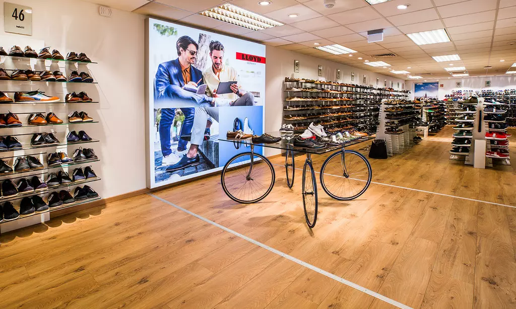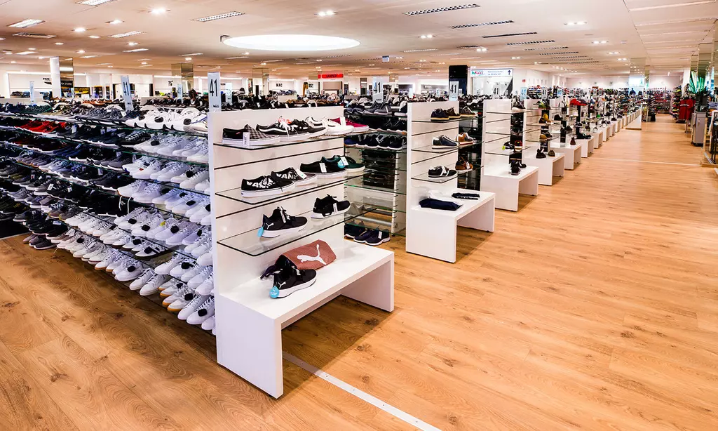 Auf 1.600 qm Verkaufsfläche in Kulmbach finden Sie Herrenschuhe und Sportschuhe, sowie Herrenmode und Accessoires. Die riesige Auswahl an Schuhen pro Saison ist ein Paradies für jeden Mann. Von Schuhgröße 40 bis 52 kann man aus dem Vollen schöpfen.