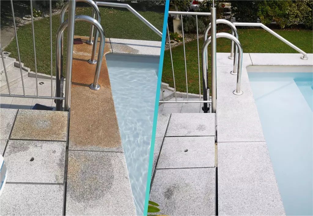 Wir reinigen und pflegen sämtliche Steine und Feinsteinzeugfliesen sowohl im Innen als auch im Außenbereich. Einige Beispiele sind Marmor, Kalkstein, Granit, Schiefer, Sandstein, Quarzit oder Kunststeine wie Terrazzo oder Terracotta. Unser Team beseitigt effektiv Verschmutzungen, Verätzungen, Algen, Moose, Ausblühungen, Rost oder Kalkablagerungen.