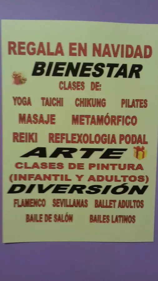 Un centro donde se imparten clases de yoga, taichi, pilates, bailes de salón, bailes latinos, sevillanas, flamenco, chikung, reiki y otras actividades para el cuerpo y la mente. Un lugar donde desconectar, estirarse, aprender, respirar, bailar, conocer buena gente, disfrutar, sonreir, compartir buenos momentos. Se puede asistir a una clase de prueba en los grupos con plazas disponibles. Estamos muy cerca del metro de urgel y a menos de 15 minutos de oporto, opañel, marqués de vadillo y plaza elíptica. Solo por hoy, sonríe.