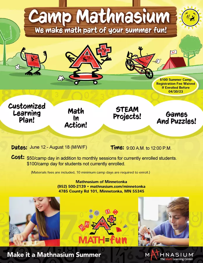 Mathnasium is a math-only learning center that offers customized learning plans, homework help, and test preparation services to students in grades K-12. Expert instruction is available both in center and online. Whether students need a solid review of previous material or a preview of upcoming concepts, Mathnasium can help. We will build a customized program for your child to meet them exactly where they are, close gaps, and take them where they need to go. We believe that virtually every child has the ability to master math – it’s just a matter of teaching them in a way that makes sense to them. When math makes sense, excitement grows, grades improve, and doors open!