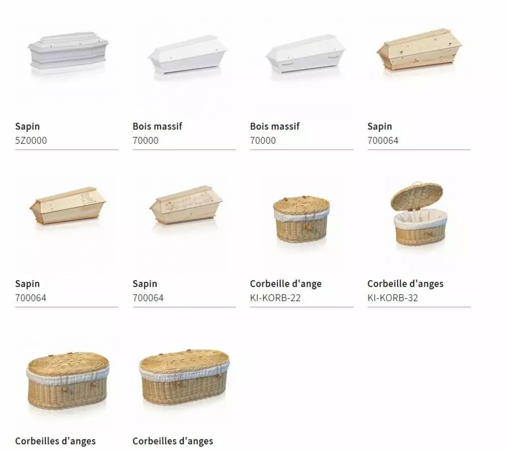 - Fourniture de tous types de cercueils, capitons, urnes, croix, etc.