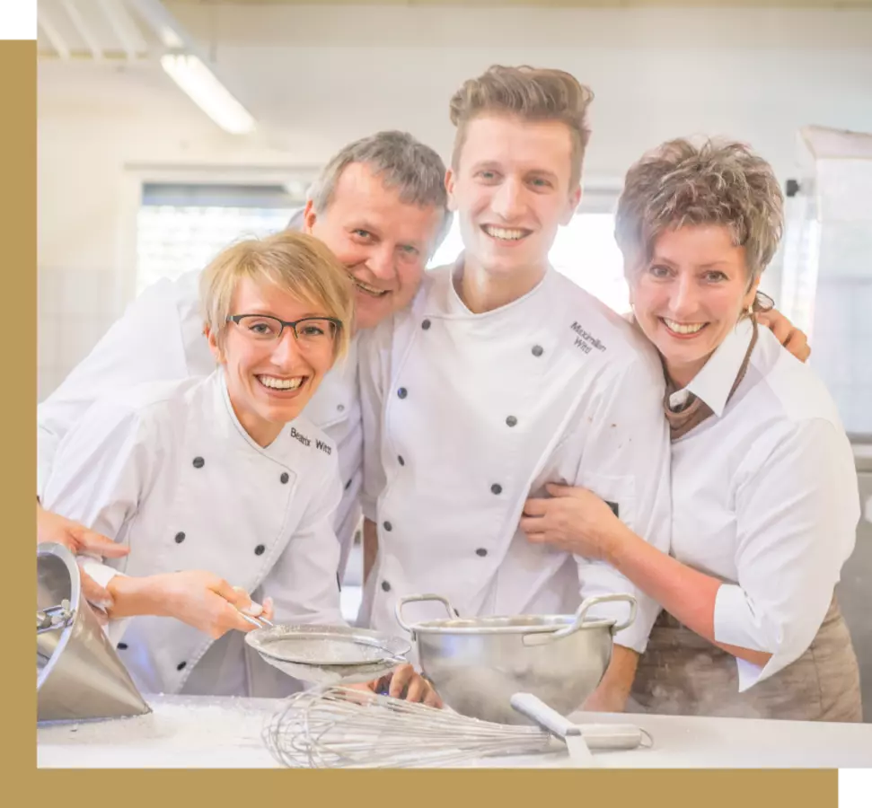 Unsere familiengeführte Konditorei besteht aus einem engagierten Team, welches immer mit ganzem Herzen an die Umsetzung der Kundenwünsche und der alltäglichen Backwerke herangeht. Deshalb ist unsere Geheimzutat Liebe – sie führt unsere Hände bei der Erstellung kreativer Ideen, ob für die Anfertigung feiner Köstlichkeiten, die Herstellung unserer Schokolade oder die Teilnahme an der SAT1 Show „Das große Backen“. Wir arbeiten mit viel Liebe zum Detail. Lassen Sie sich von uns verzaubern und verwöhnen.
