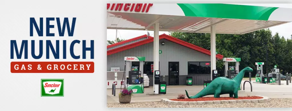 New Munich Gas & Grocery is a locally owned convenience store, Sinclair Station. Fresh coffee and baked goods. Made to order deli items, 20lb propane cylinder exchange. The friendly staff provides an enjoyable shopping experience in New Munich, MN! Visit Dino the dinosaur too!