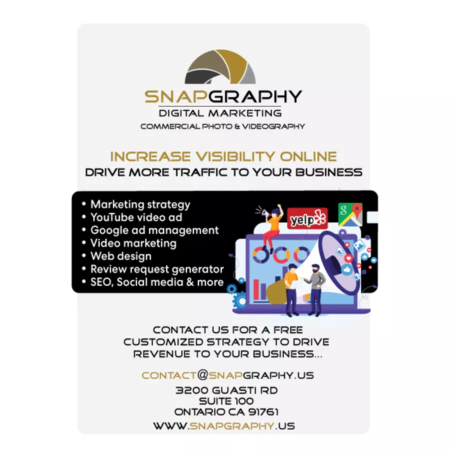 SNAPGRAPHY offers top-notch commercial photography, videography, and website development services to businesses in Ontario, California. Our team of skilled professionals is dedicated to capturing your brand’s essence and creating stunning visuals that leave a lasting impression. In addition to our creative services, we provide comprehensive digital marketing solutions to help you reach your target audience and achieve your business goals.