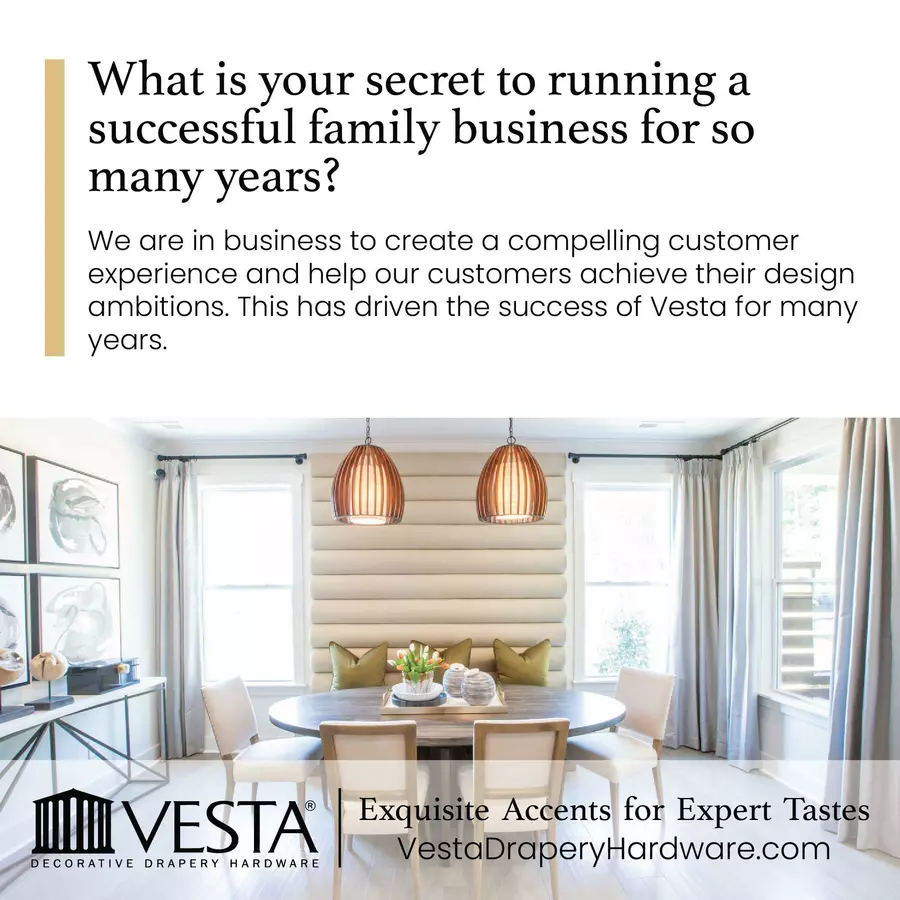 Our mission at Vesta is to provide our clients with a compelling customer experience through a selection of drapery hardware to achieve their design ambitions.