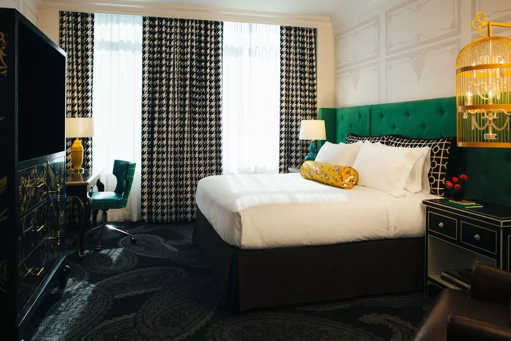 Where the storied three rivers meet in downtown Pittsburgh, your own story begins at Hotel Monaco. Housed in a striking 1903 building in the Central Business District across from Mellon Square Park, our boutique hotel has a playfully bold design that’s unafraid to make a statement. Across 248 guest rooms, 13 suites, and 11,300 square feet of meeting space, you’ll see curiously charming touches, like golden birdcage chandeliers, while many of our 13 suites boast separate living rooms with sleeper sofas, soaking tubs and views of the city skyline.