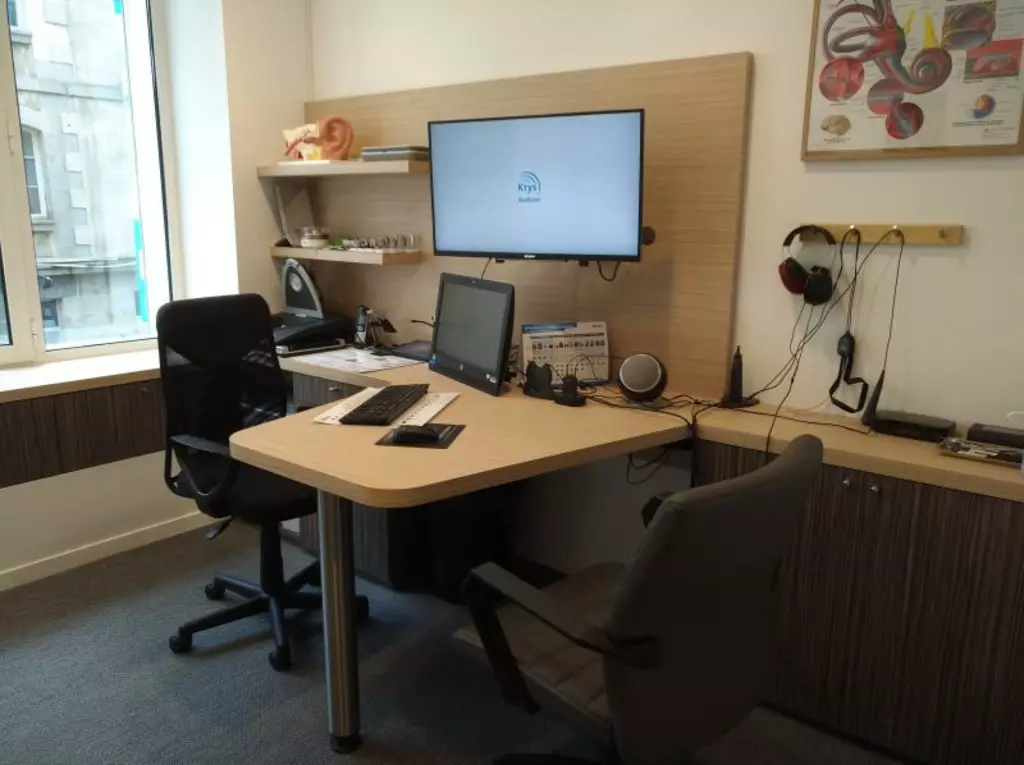 Chez Rennes - Hesteau Nemours - Krys Audition, nous sommes soucieux de votre santé auditive. C'est pourquoi nous avons mis en place un espace audition dans notre magasin, où nos audioprothésistes KRYS sont à votre disposition pour réaliser un bilan auditif complet. Grâce à notre expertise et notre savoir-faire, nous sommes en mesure de vous accompagner dans le choix de votre futur appareil auditif en fonction de vos besoins spécifiques. Nos experts en audioprothèse situé à Rennes sont à votre écoute pour comprendre vos besoins. Nous sommes conscients de l'importance de la maintenance régulière de votre appareil auditif. C'est pourquoi nous proposons des services d'entretien afin de garantir que votre matériel fonctionne de manière optimale.