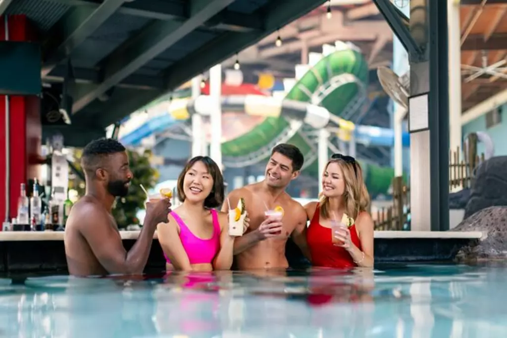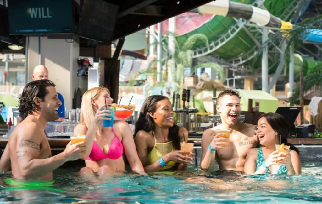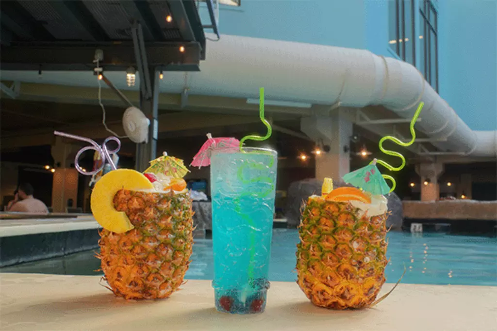 Join us at Oasis for delicious slushies and your favorite cocktails. Its an area just for our moms and dads to hangout and enjoy the swim up bar area.