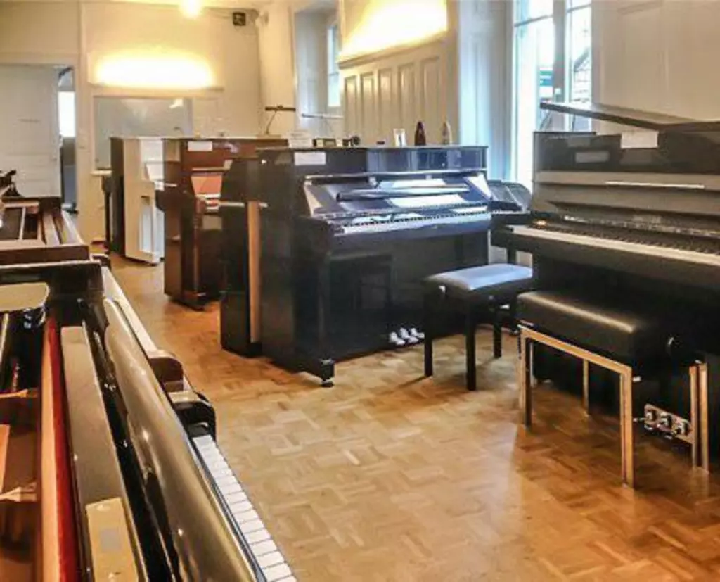 Besuchen Sie unseren Showroom mit 40 Pianos verschiedenster Hersteller und besichtigen Sie unsere Klavier - Werkstatt. Kundenparkplatz vor dem Haus.Unser Angebot umfasst alle Tasteninstrumente mit Zubehör: