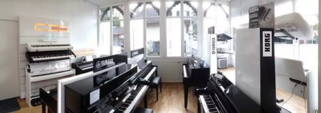 Im Showroom auch die neuesten Digitalpianos der Marken ROLAND und KAWAI, schöne Klaviere von Sauter, Grotrian-Steinweg, Wilhelm Steinberg, Blüthner, Schimmel, Pfeiffer, Schweizer Klaviere wie Burger & Jacobi, Sabel und andere.